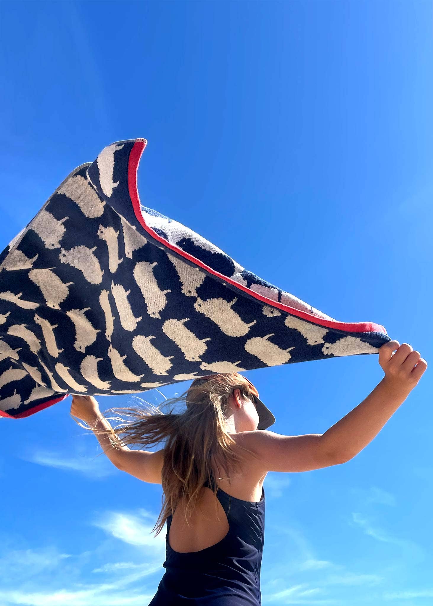 A stylish hand towel, featuring a Kissing Sheep design. This simple sheep motif is full of of character and is inspired by the British Countryside.