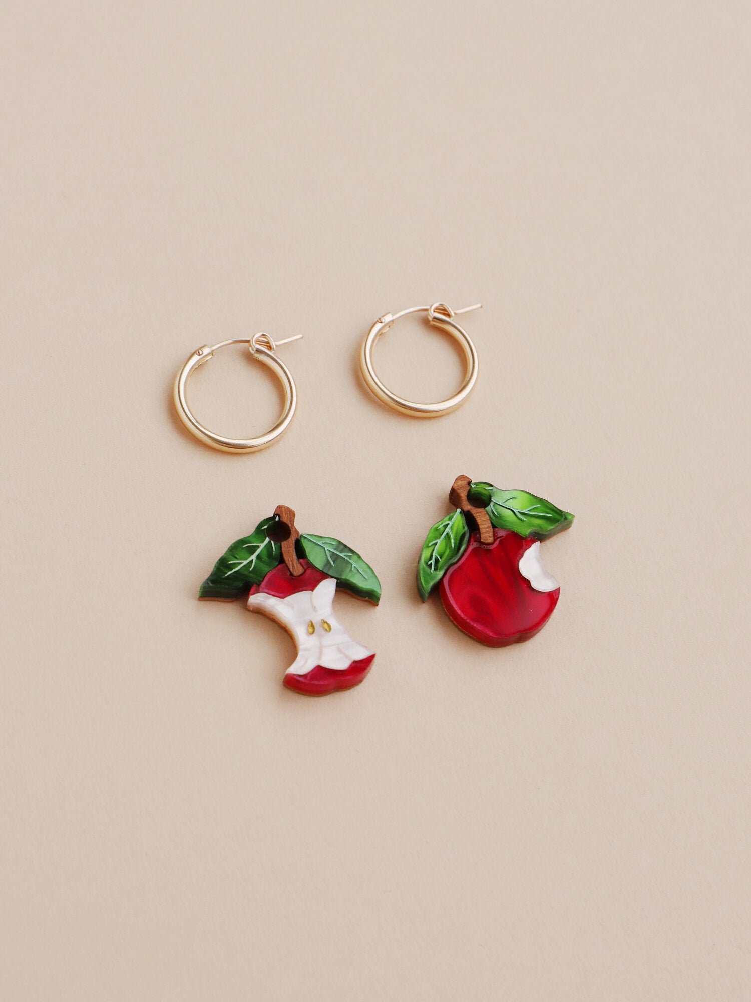 These apple hoops are made from acrylic with hand-inked details, in our new red colour-way!