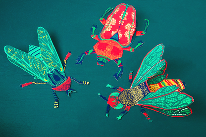 Die cut and embellished with metallic gold details, this card is a work of art! Leave your message on the panel beneath the blue bottle's wings. Comes with a matching envelope in bio cello.