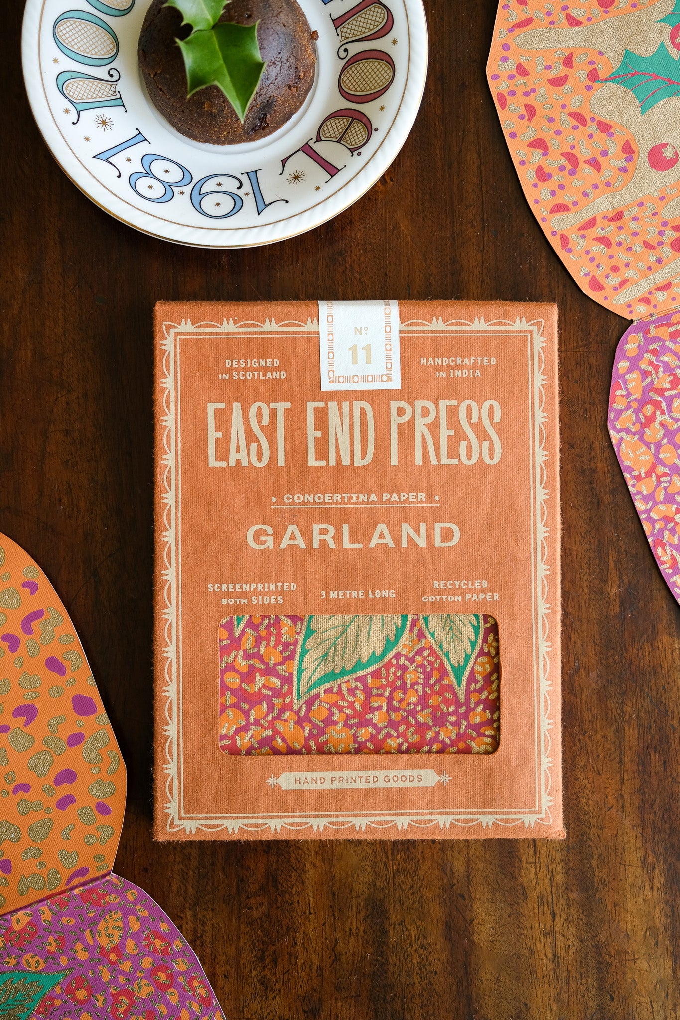 A colourful Christmas Pudding garland with richly patterned puddings on both sides.Such a fun decoration!