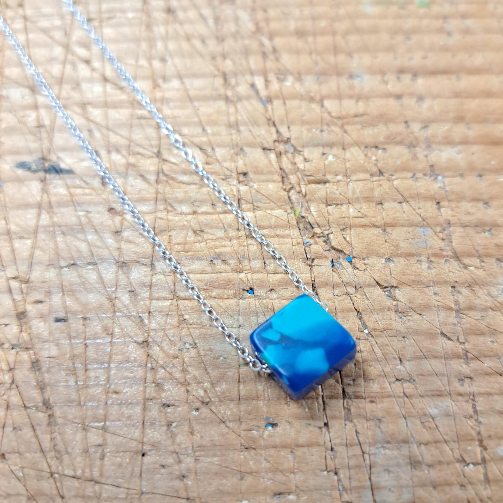 Blue resin with a turquoise speckle pattern handmade by Carla Edwards.