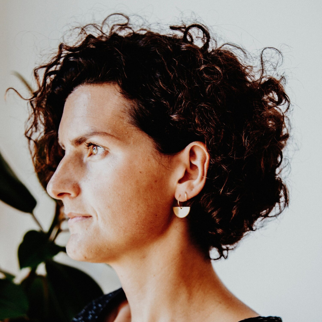 A simple charm shape made from sustainable material, with a subtle brass sparkle and sterling silver hoop.