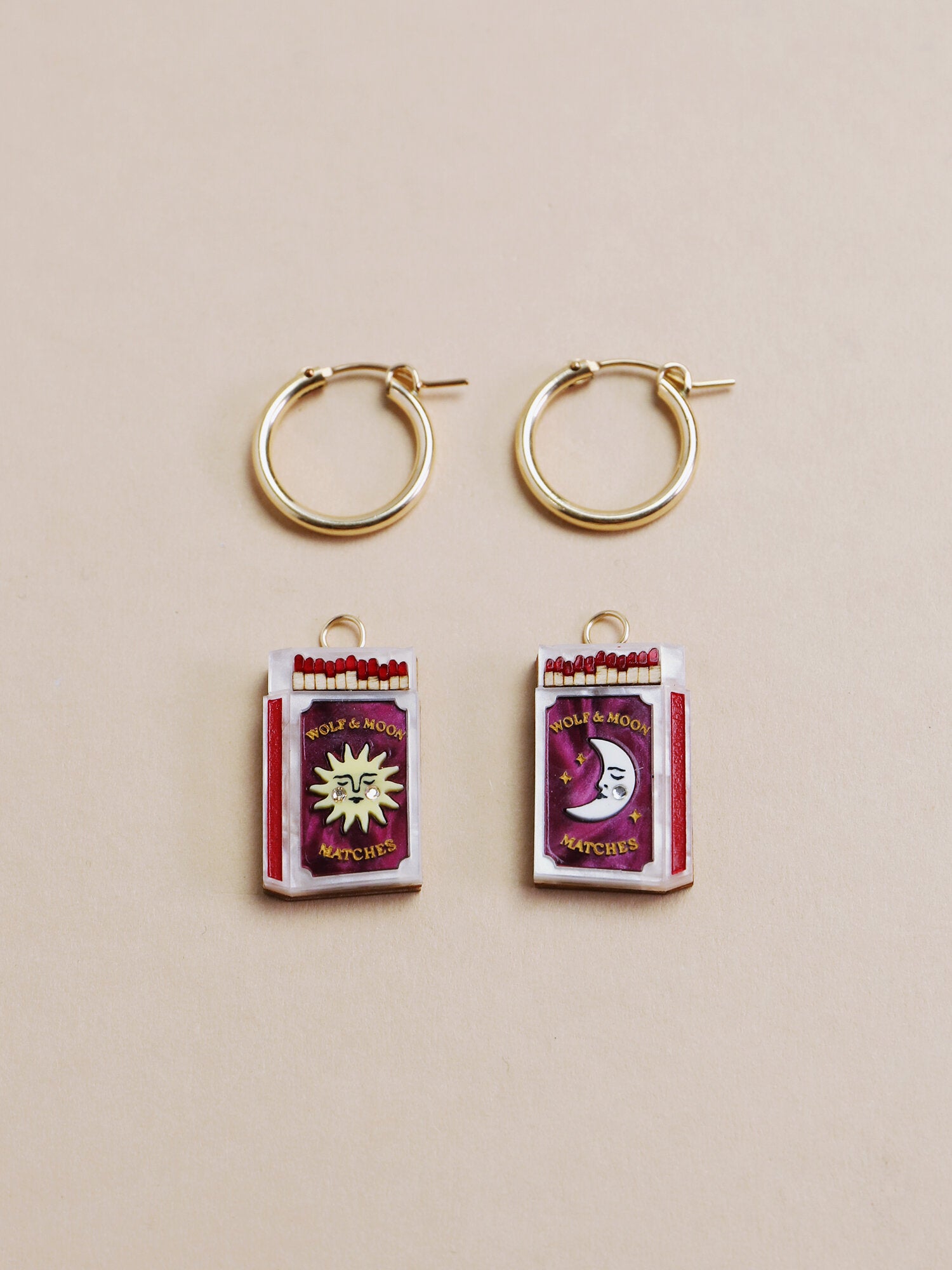 Playful and sophisticated matchbox hoop earrings by Wolf and Moon
