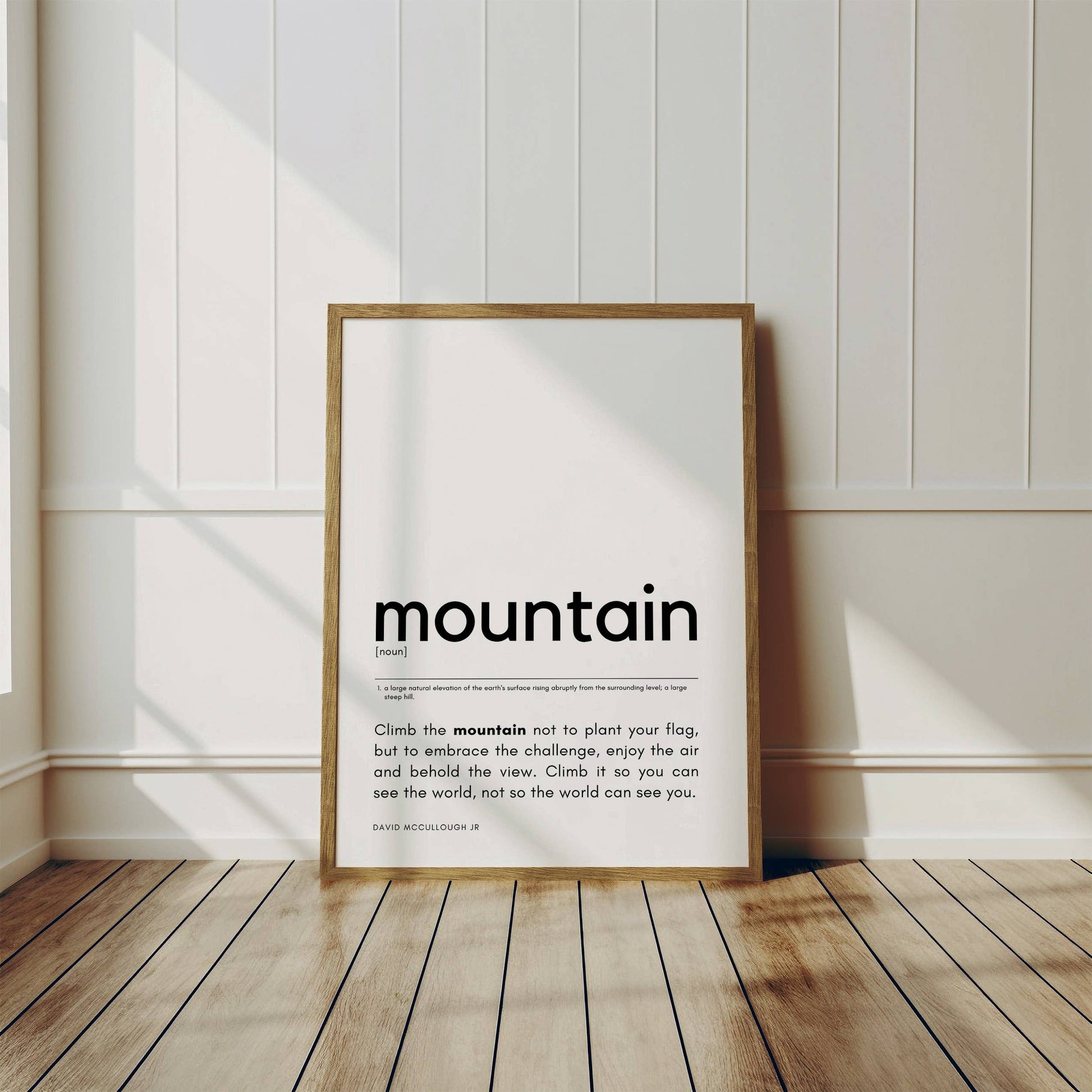 This design is modern & contemporary typography print, including the definition of a mountain and a beautiful quote.