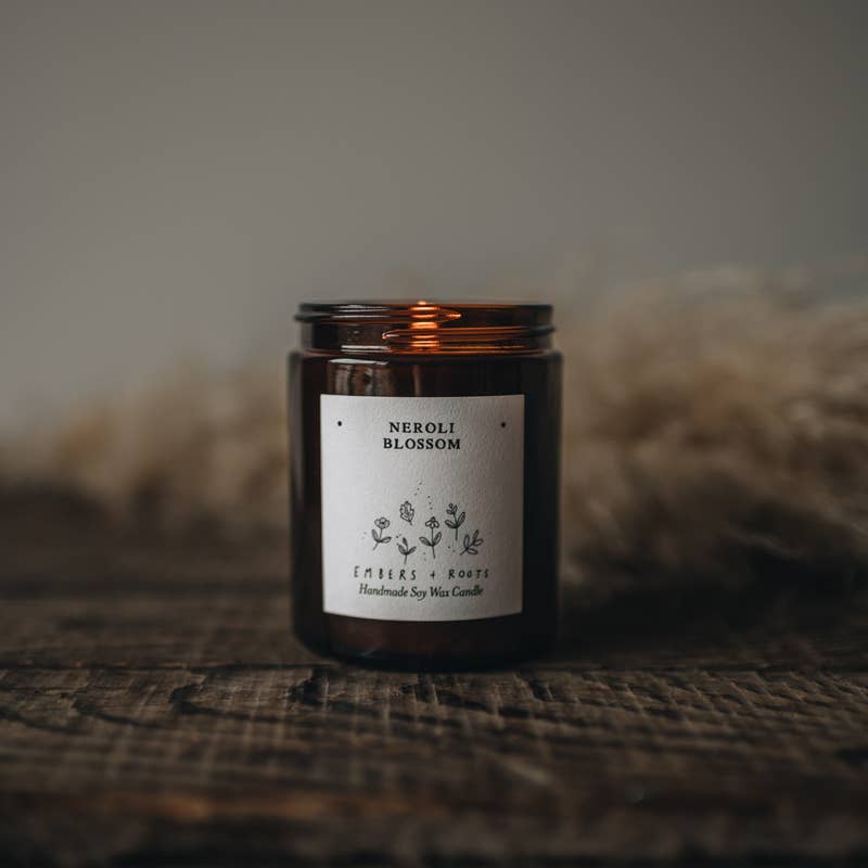 A delicious scent of Neroli Blossom by Ember and Roots, with basil, neroli, bergamot.