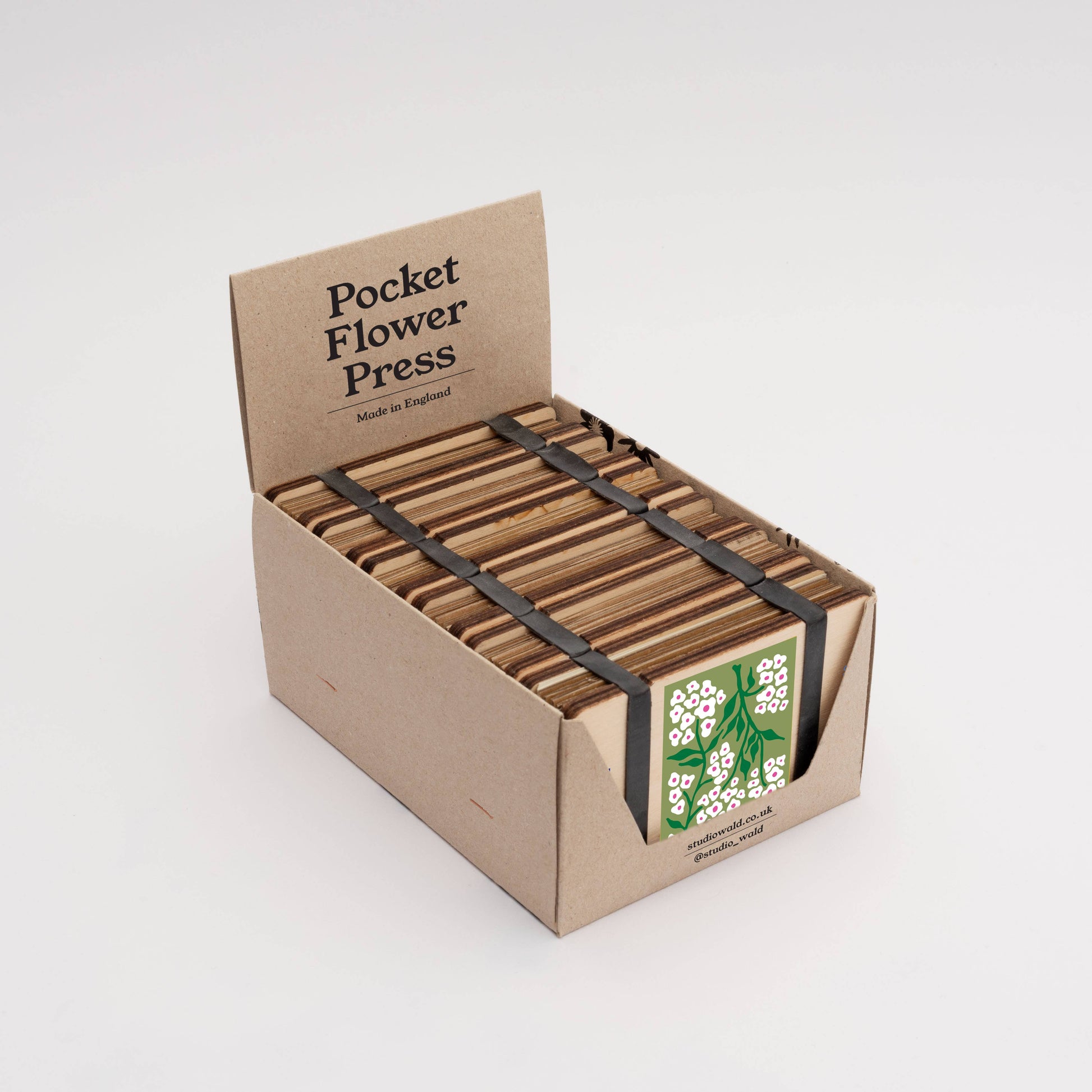 Safely press your flora in the pocket press so your plant materials stay intact. Fasten using the elastic bands and pop the press in your pocket. The press comes complete with 5 sheets of corrugated card and 8 of sugar paper to give ample space to press flowers.