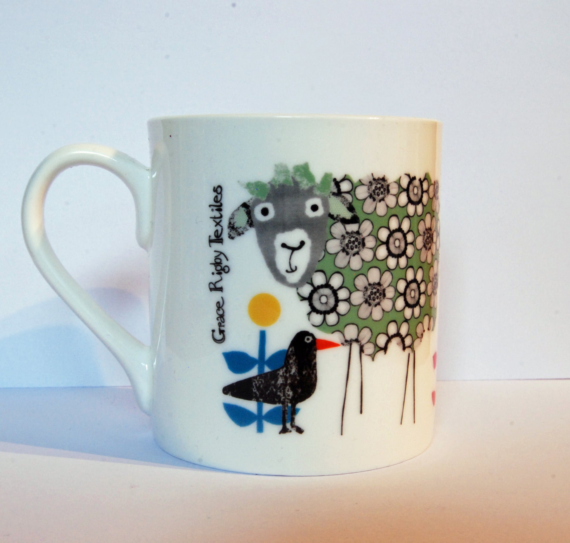 A bone china mug featuring a design I made from a cut paper project.